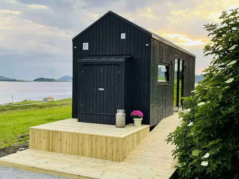Kråberget, eksklusivt mikrohus med panoramautsikt over fjord fjell